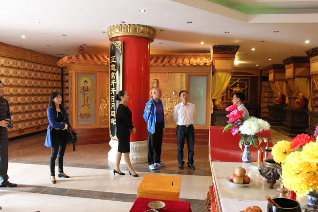 在公司經理林有剛及各分管部門領導的陪同下,先后檢查了日月壇、福壽園及各個惠民產品區等,檢查過程中主要是針對墓區道路是否達標及墓碑是否超標等情況進行一一了解,及惠民產品等情況進行參觀指導,最后以匯報的方式將公司2013年進行殯葬宣傳情況,園區綠化投入情況,公司推行節地葬、生態葬等基本情況等進行逐一的講解及匯報。