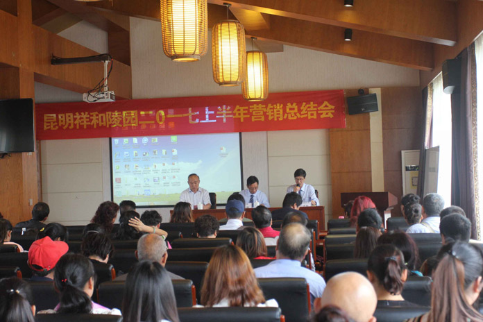 7月11日-12日,昆明祥和陵園在彌勒市鑫甲泉酒店召開了為期兩天的上半年度工作經濟會議,此次會議的參會人員主要是公司業務中介團隊人員130人,業務部、市場部以及公司各領導,會議內容主要是針對昆明祥和陵園2017年上半年度工作進行一個分析、回顧及總結,同時對下半年的工作進行規劃部署和展望。