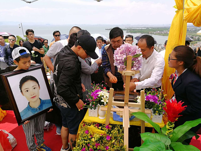 昆明祥和陵園承辦了劉潔的安葬禮儀,祥和陵園一直秉承“誠信服務”的企業精神,遵循“尊重生命、人文關懷,傳遞心愿、傳承孝道”的服務宗旨,堅持人文化、個性化、專業化、規范化的服務理念,致力于傳承傳統殯葬文化與弘揚現代文明的殯葬理念相結合,形成獨有的殯葬文化體系,為了讓逝者安息、生者堅強,讓思念不留遺憾,工作人員提前做好了各項準備工作,逝者生前最愛的音樂、白玫瑰以及祥和陵園專業的禮儀團隊。